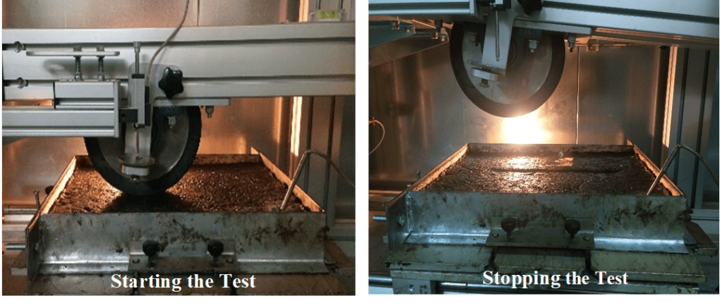 Wheel tracking test processes for modified asphalt mixtures, see more: Khaled, T., Kareem, A., Mohamad, S., Al-Hamd, R., (2024) The performance of modified asphalt mixtures with different lengths of glass fiber, the International Journal of Pavement Research and Technology. https://doi.org/10.1007/s42947-024-00443-x